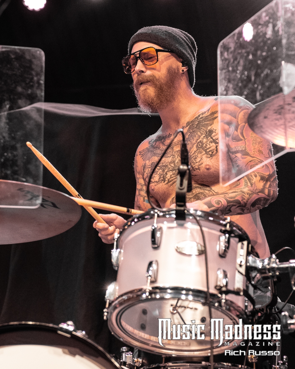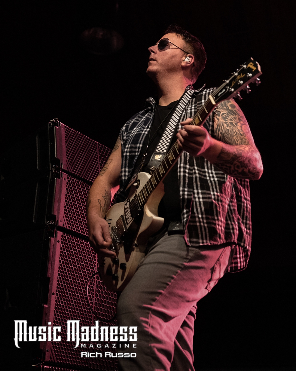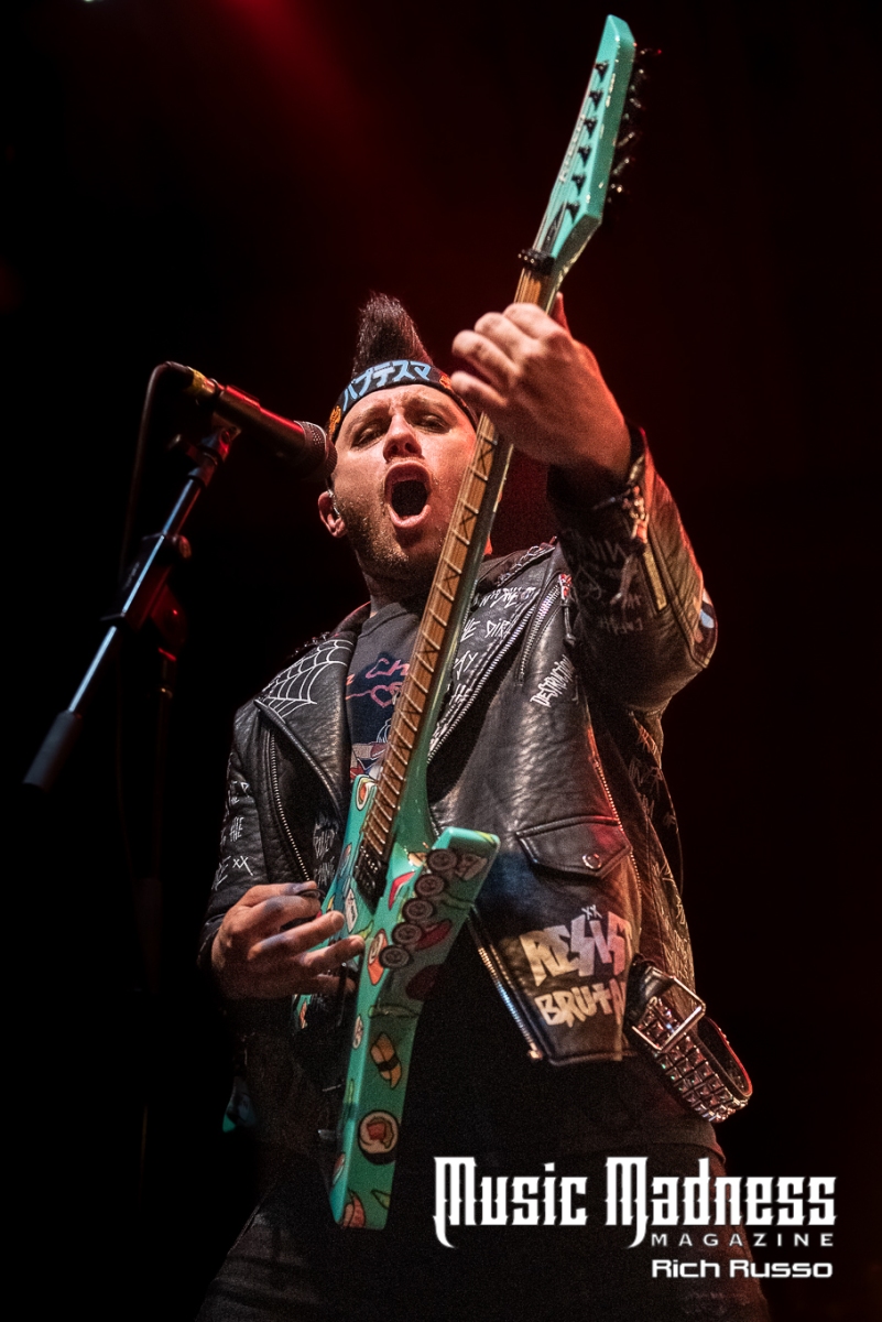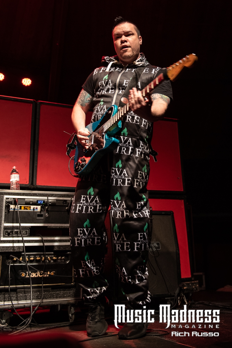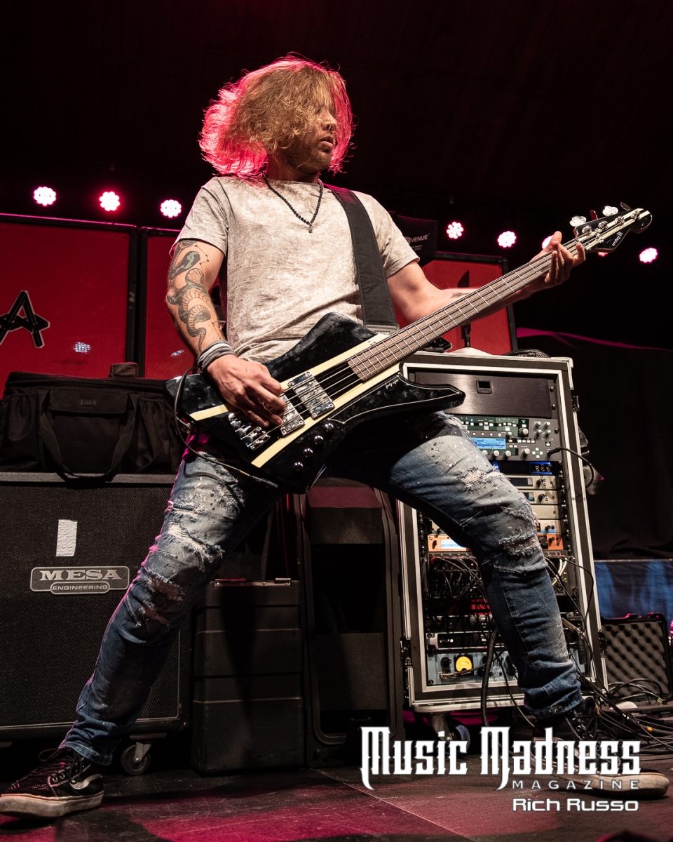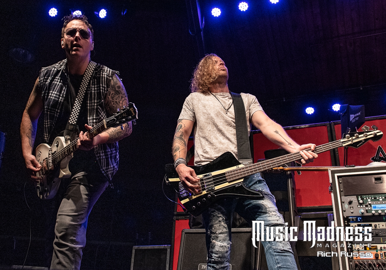 Eva Under Fire was the first band to take the stage. The band started out in Detroit in 2015. They are touring on their 2022 full-length release, “Love, Drugs & Misery”. These up and comers were very well received and the feeling was reciprocated. The band was clearly energized by the enthusiasm of their fans both old and those they had just made. Their modern hard rock sound has the aggressiveness of punk. This makes them fun to listen to as well as watch. Lead singer Amanda Lyberg (who also goes by Eva Marie) has a powerful voice and commands the stage. She is not one to stand in front of a mic stand and belt out her songs. No, she engaged the crowd with fist-waving and finger-pointing. This got the crowd engaged and energized as all good opening bands should!