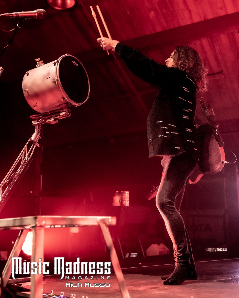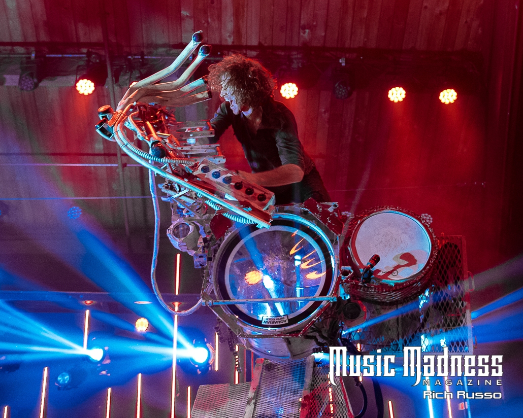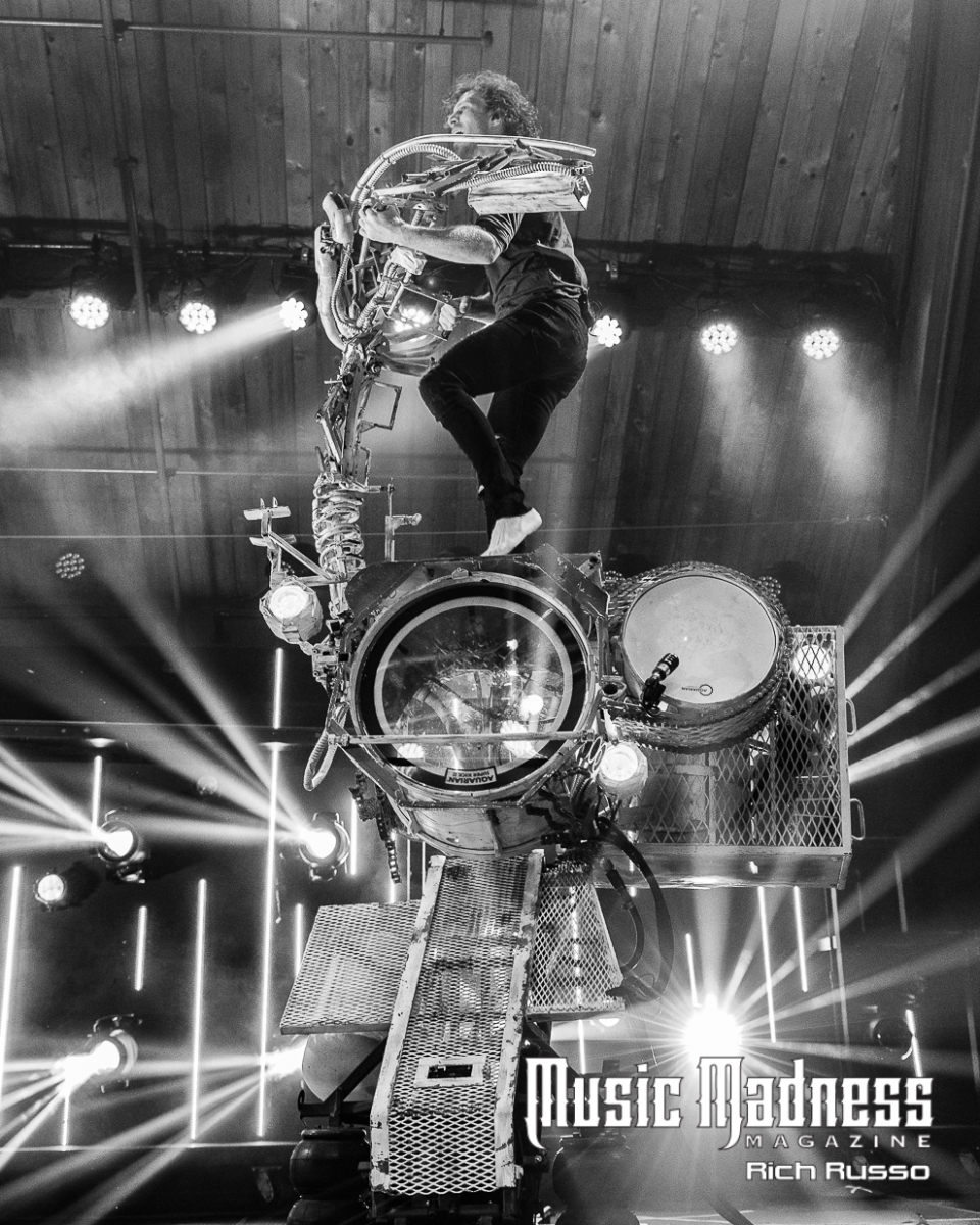 The band is as engaging as their music. Frontman Jonny Hawkins is a wild man who rarely remains in one spot for long. The culmination of his wildness is when he rides the scorpion tail. It’s the creation from the mind of band bassist and mad scientist, Daniel Oliver. This is a 400-pound, 14-foot-tall piece of machinery that rises and writhes about with Jonny on it. In short, it’s not only a wild theatrical display, it allows Jonny to manipulate the band’s sound using a series of levers through a musical instrument digital interface. It’s a big part of the show as the crowd went wild whenever Jonny took to the air.