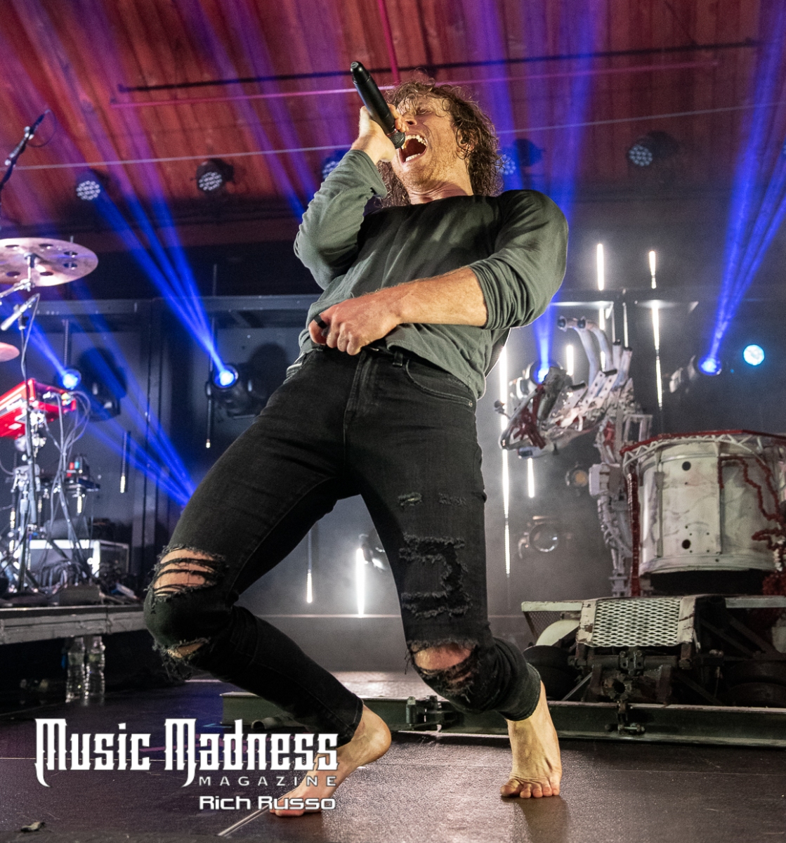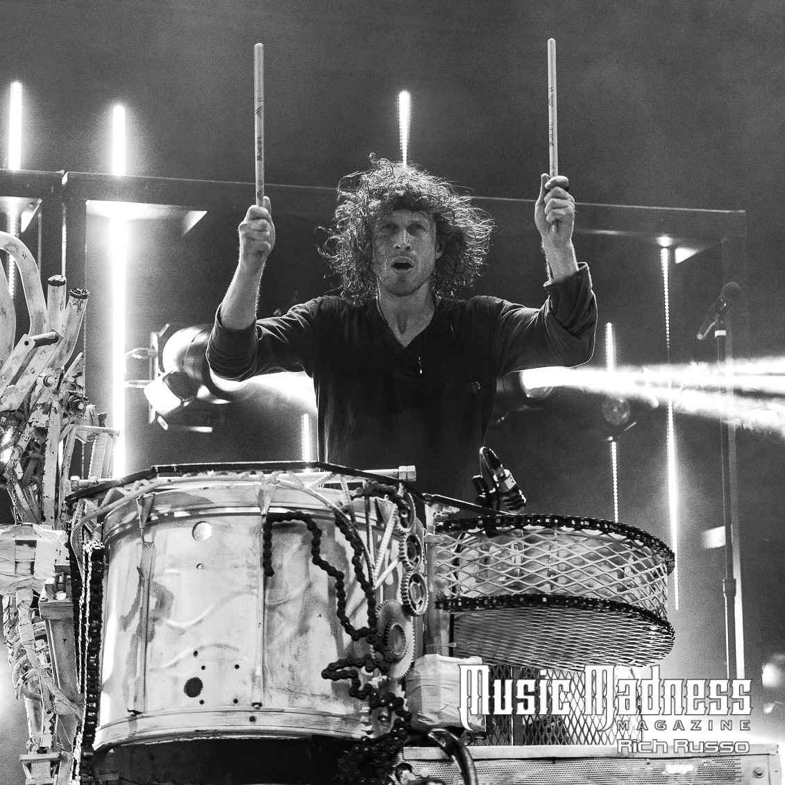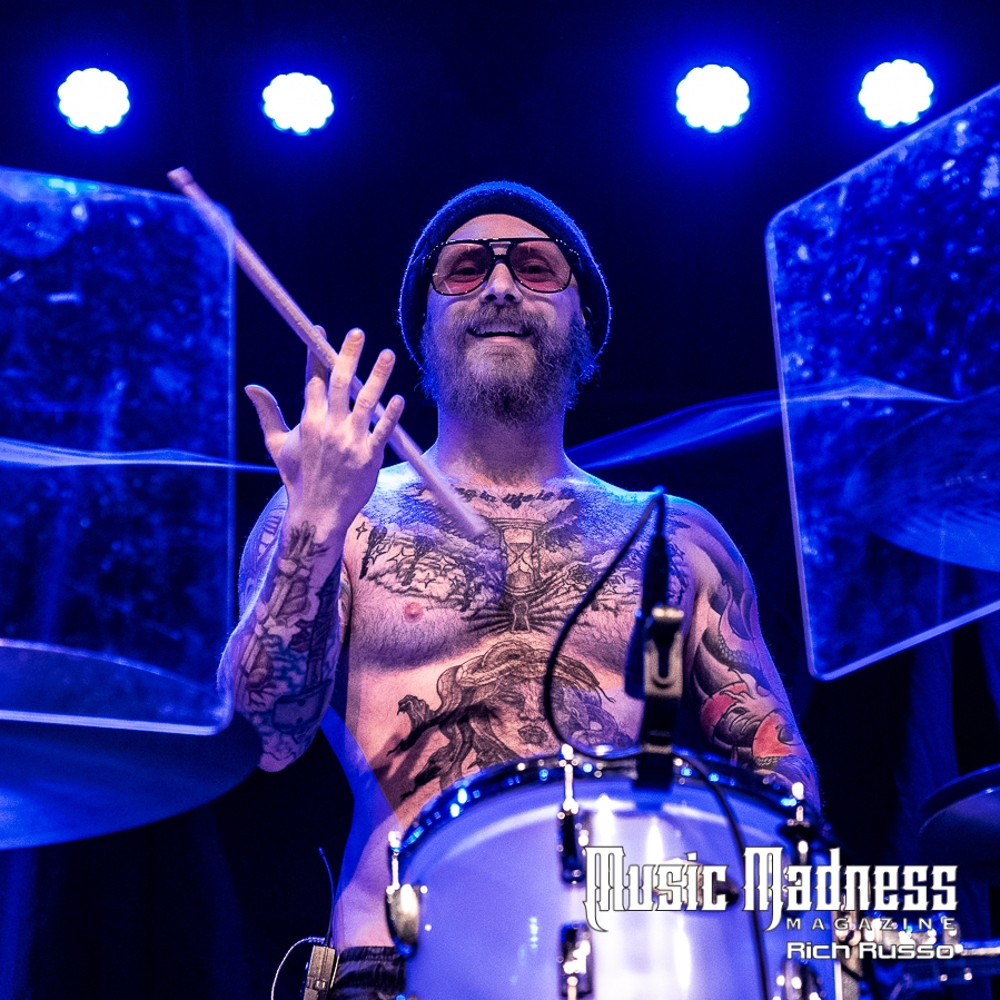 The band is as engaging as their music. Frontman Jonny Hawkins is a wild man who rarely remains in one spot for long. The culmination of his wildness is when he rides the scorpion tail. It’s the creation from the mind of band bassist and mad scientist, Daniel Oliver. This is a 400-pound, 14-foot-tall piece of machinery that rises and writhes about with Jonny on it. In short, it’s not only a wild theatrical display, it allows Jonny to manipulate the band’s sound using a series of levers through a musical instrument digital interface. It’s a big part of the show as the crowd went wild whenever Jonny took to the air.