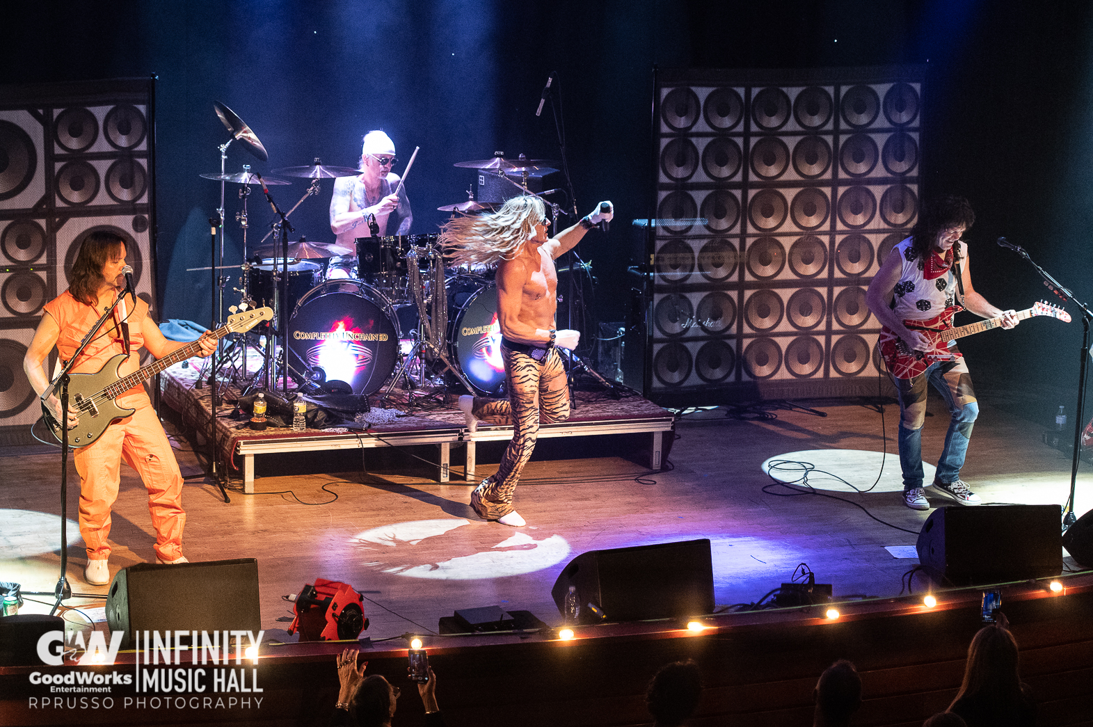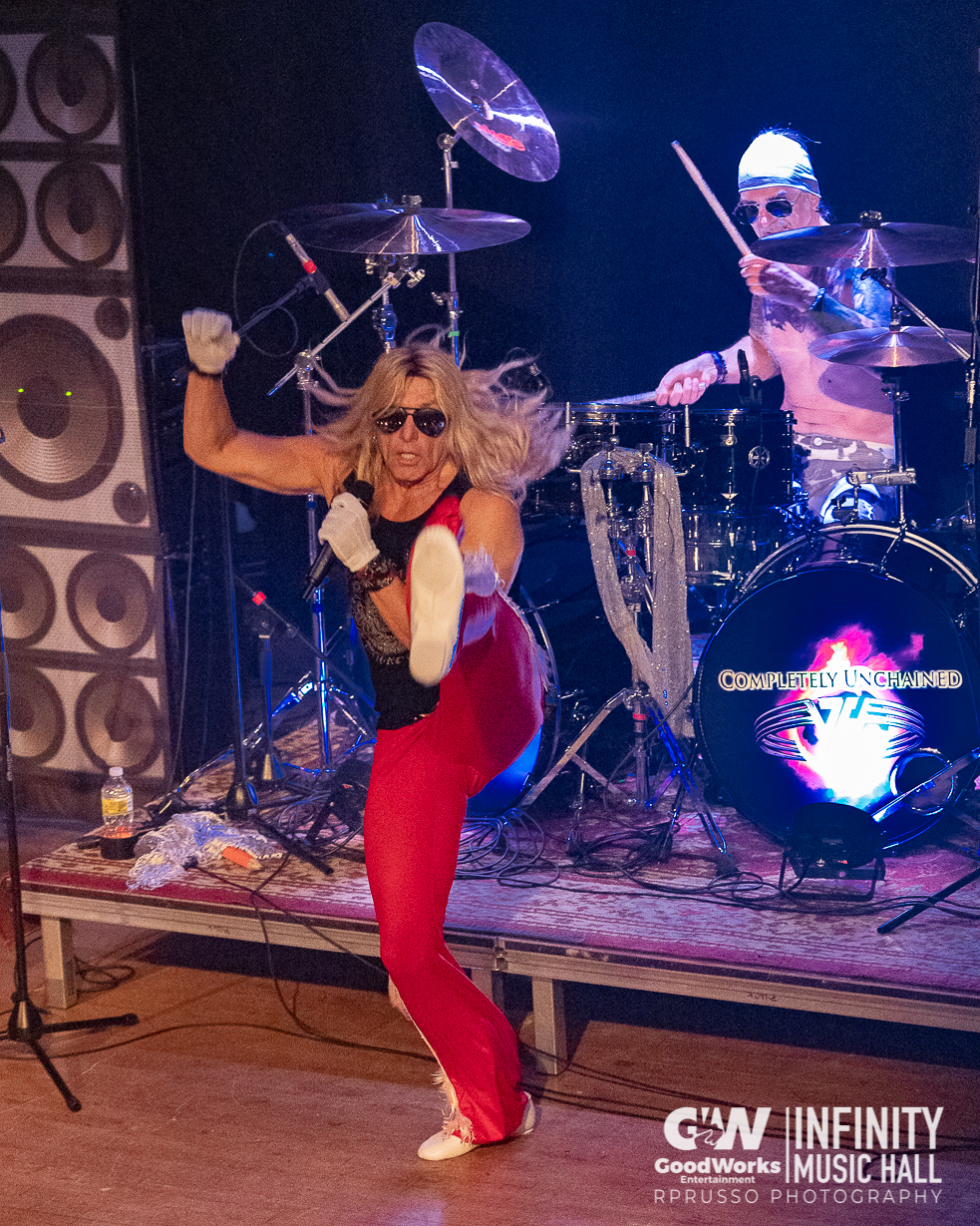 Their name is as descriptive as any band name out there. Completely Unchained are the wildest Van Halen tribute band you will see. If you close your eyes, you would swear you were in a huge arena seeing VH in their David Lee Roth heyday. But don’t close your eyes because you won’t want to miss this amazing show. Eugene Henriksen personifies DLR like no one out there. On guitar, Jake Miller does an amazing job of channeling the late great Eddie Van Halen. Here are a few photos of the band kicking ass and taking no prisoners at Hartford Connecticut’s Infinity Music Hall.